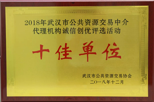 ——熱烈祝賀東方華太公司榮獲“武漢市2018年度公共資源交易中介代理機構誠信創(chuàng)優(yōu)十佳單位”稱號